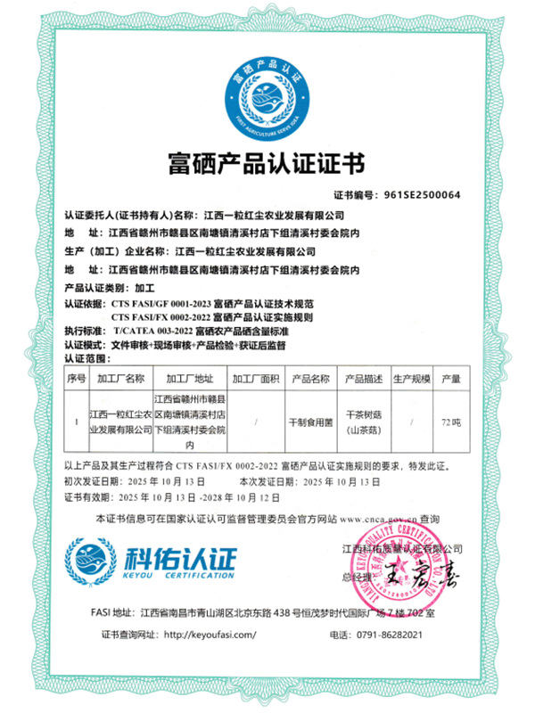 江西一粒紅塵農業發展有限公司是一家總部位于江西省贛縣的現代農業多元型企業,專注于食用菌的研發、種植、深加工貿易、研教培、農文旅等全產業鏈發展。公司秉承“健康綠色共享共贏”的核心價值觀,致力于引領鄉村振興之路,旨在成為......